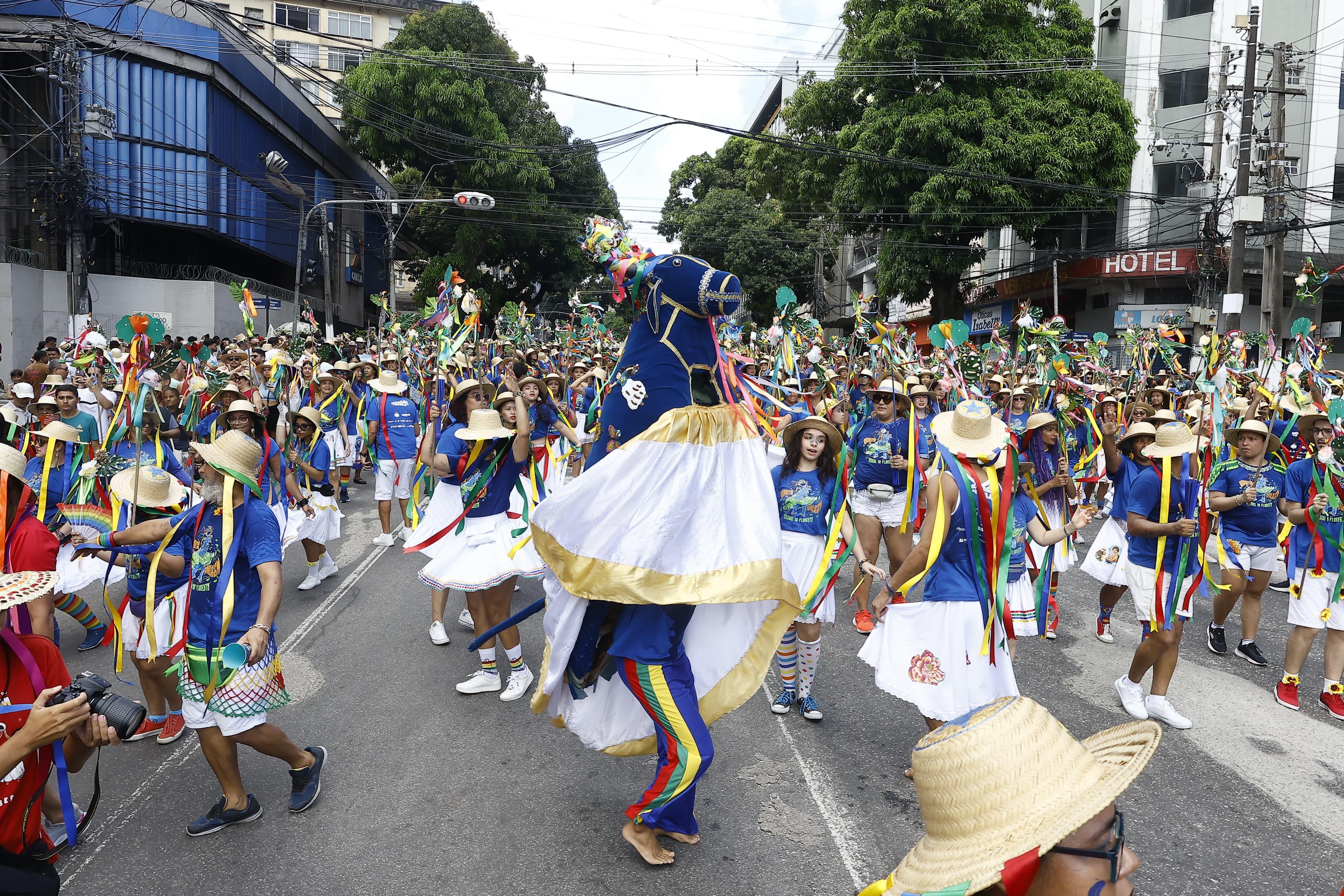 O centro de Belém amanheceu neste domingo (15/06), tomado por chapéus coloridos com fitas azul, verde, amarela e vermelha, música e cultura popular. O cenário marcava a expectativa para o início da temporada de cortejos do Arrastão do Pavulagem, que realizou sua primeira edição de 2025 com a participação de um número recorde: 1.200 integrantes no Batalhão da Estrela. Os próximos cortejos acontecerão nos dias 22 e 29 de junho e 6 de julho.